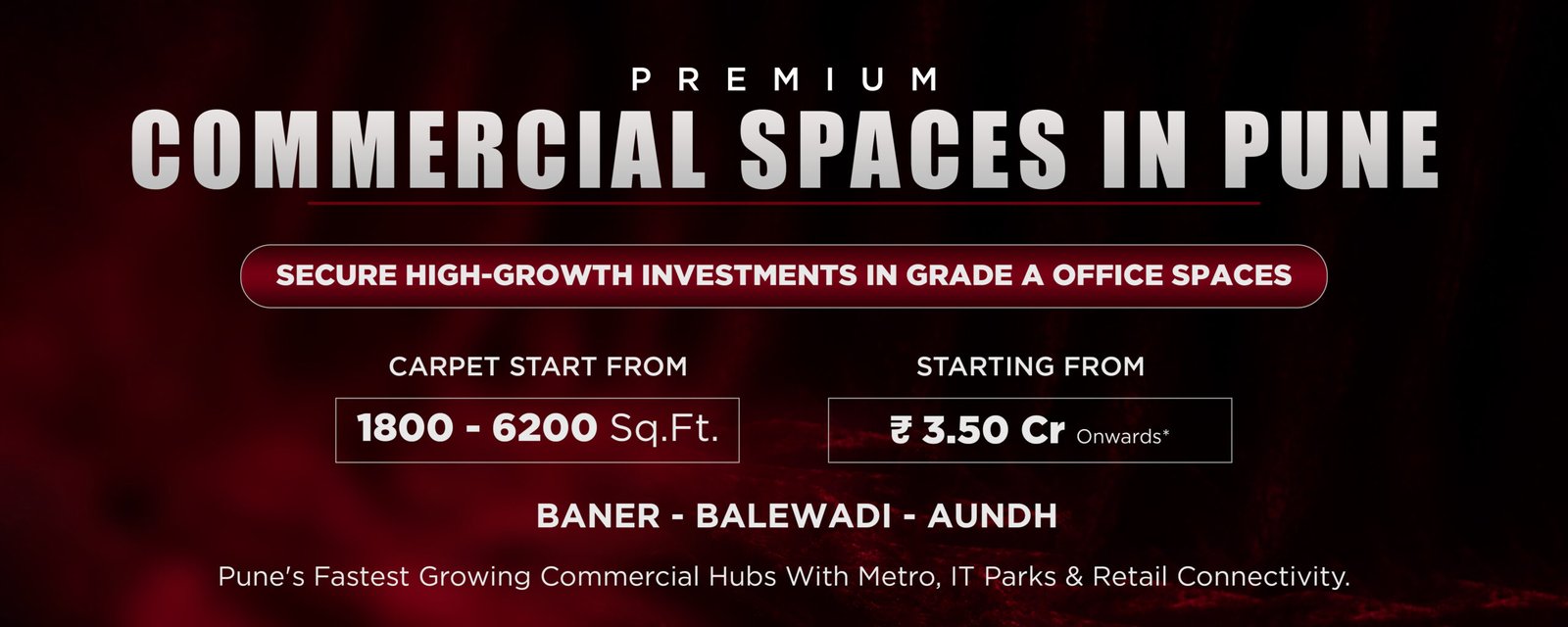 These developments feature world-class amenities, seamless connectivity, and future-ready infrastructure. Whether you’re looking for a compact office or a large corporate space, Pune offers the ideal destination to grow your business and elevate your brand presence.
